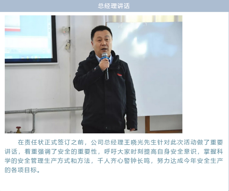 安全責(zé)任狀簽訂活動主要分四步進行:公布了2019年度安全生產(chǎn)總目標(biāo);發(fā)布并解釋了《安全事故考核規(guī)定》和《安全檢查管理規(guī)定》;總結(jié)了2019年EHS存在的風(fēng)險并給出對策;簽訂責(zé)任狀。